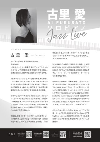 14歳で名門バークリー音楽大学に在学する天才ジャズピアニストが東北初公演! 12歳でバークリー音楽大学にプレジデンシャルスカラシップ(授業料全額免除)を得て合格し、正規の学生として同大学史上最年少で入学・在学中。恵比寿ブルーノート・プレイスでのリーダーライブなどを成功させ、TV「題名のない音楽会」にも出演した注目のピアニストが東北初のソロライブを福島で行います。