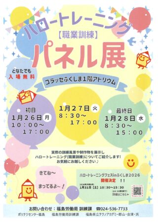 職業訓練について知っていますか?訓練内容や受講風景が分かるパネル展を実施します。ぜひご覧ください。
