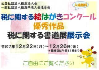 「小中学生による税に関する書道展」、「第18回税に関する絵はがきコンクール」の入賞・応募作品を展示します。