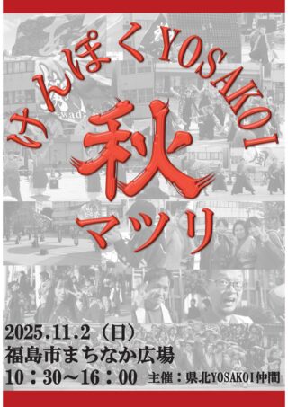 県内外で活躍するYOSAKOIチームが集います。各チーム演舞の他、鳴子の貸出もありますので、総踊りで一緒に踊ることもできます。