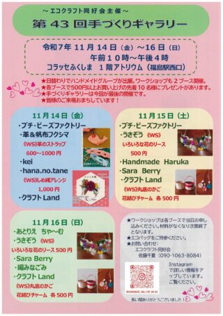 「エコクラフト同好会主催 第43回手づくりギャラリー」